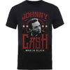 An official licensed unisex cotton Tee featuring the Johnny Cash 'Man In Black' design motif. This high quality t-shirt is available in a black colourway. We offer a range of sizes from Small through XX-Large, subject to stock availability.