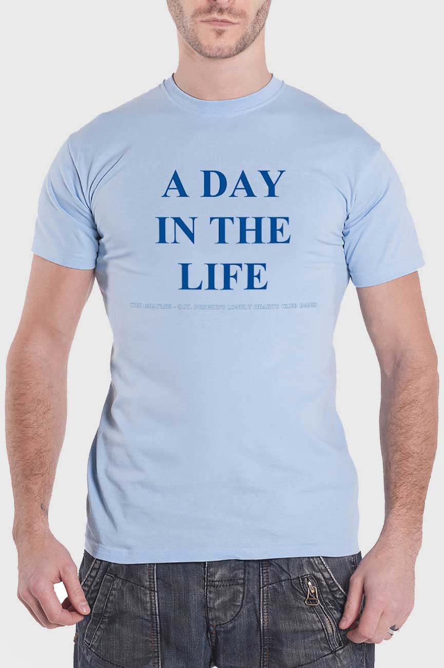 An official licensed unisex soft-style cotton Tee featuring The Beatles 'A Day in the Life' design motif. This high quality t-shirt is available in a light blue colourway. We offer a range of sizes from Small through XX-Large, subject to stock availability.