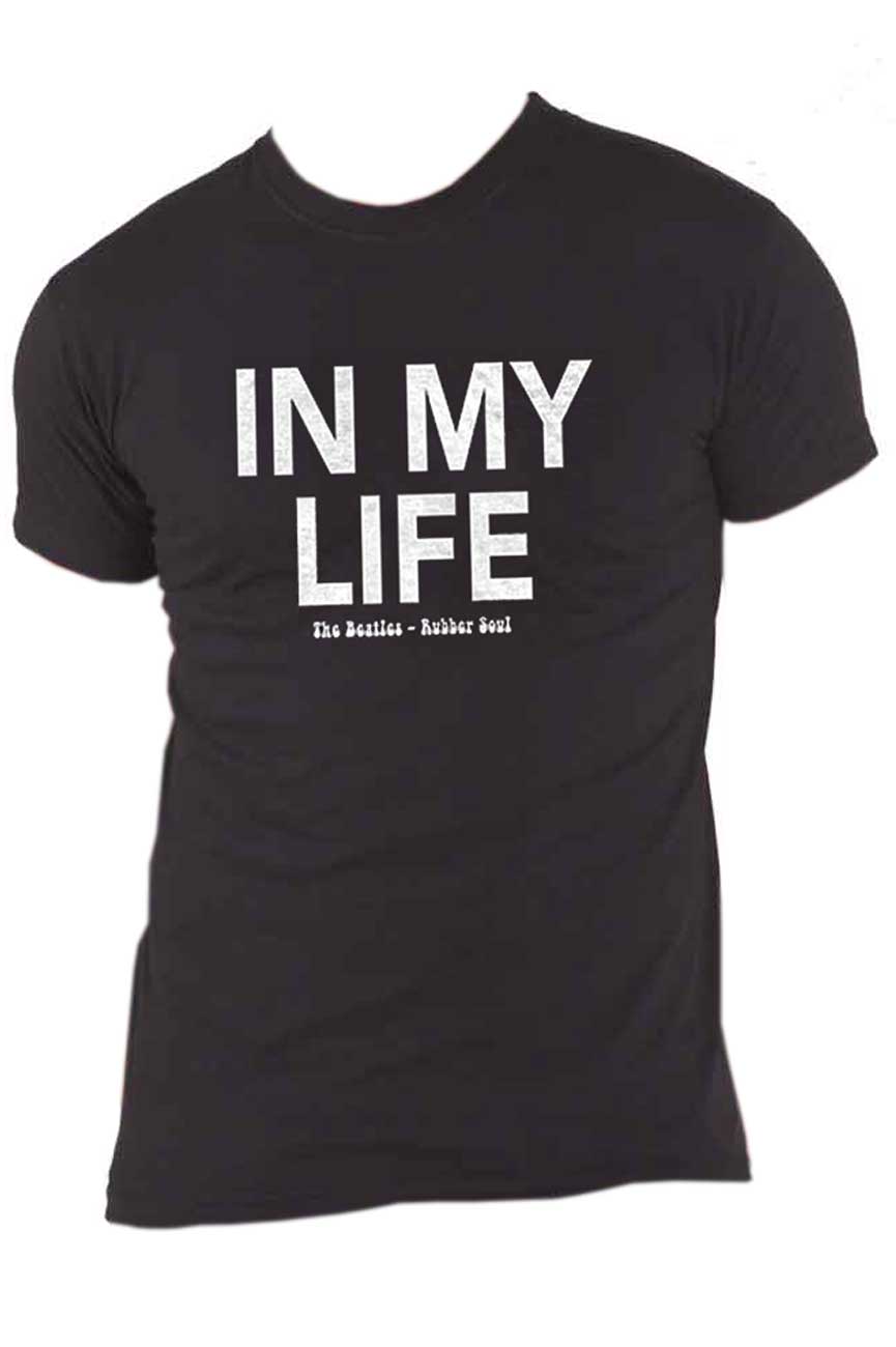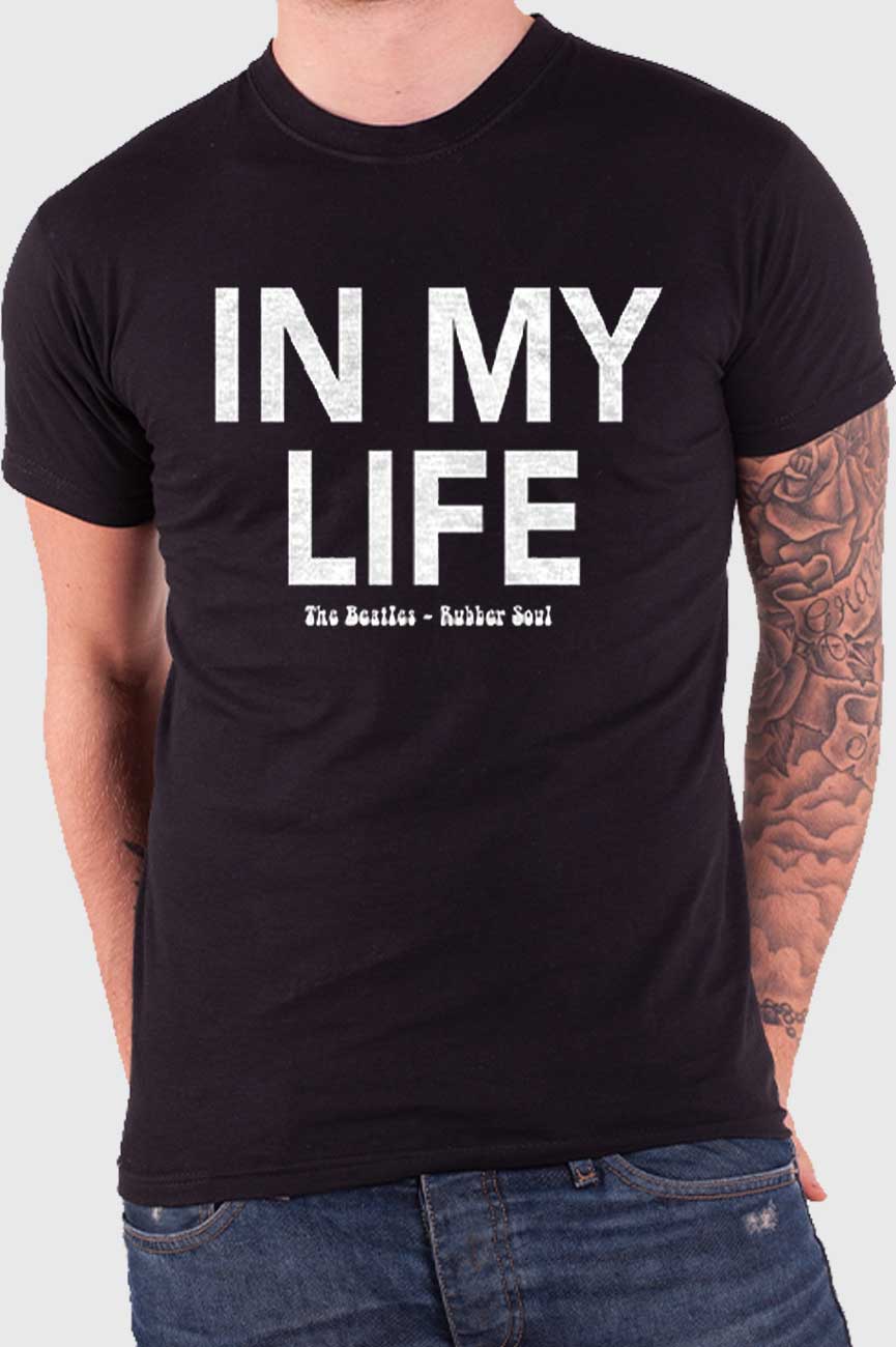 An official licensed unisex soft-style cotton Tee featuring The Beatles 'In My Life' design motif. This high quality t-shirt is available in a black colourway. Features front and back print. We offer a range of sizes from Small through XX-Large, subject to stock availability.