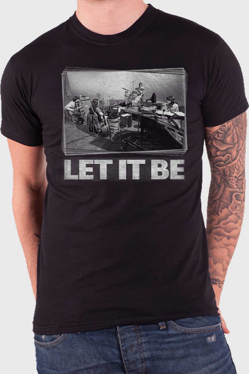An official licensed unisex soft-style cotton Tee featuring The Beatles 'Let It Be Studio' design motif. This high quality t-shirt is available in a black colourway. We offer a range of sizes from Small through XX-Large, subject to stock availability.