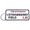Official licensed Road Sign Keychain featuring the 'Strawberry Field Liverpool Sign' design motif. Premium quality double sided patch keychain. Brand new concept. These are sure to be popular!