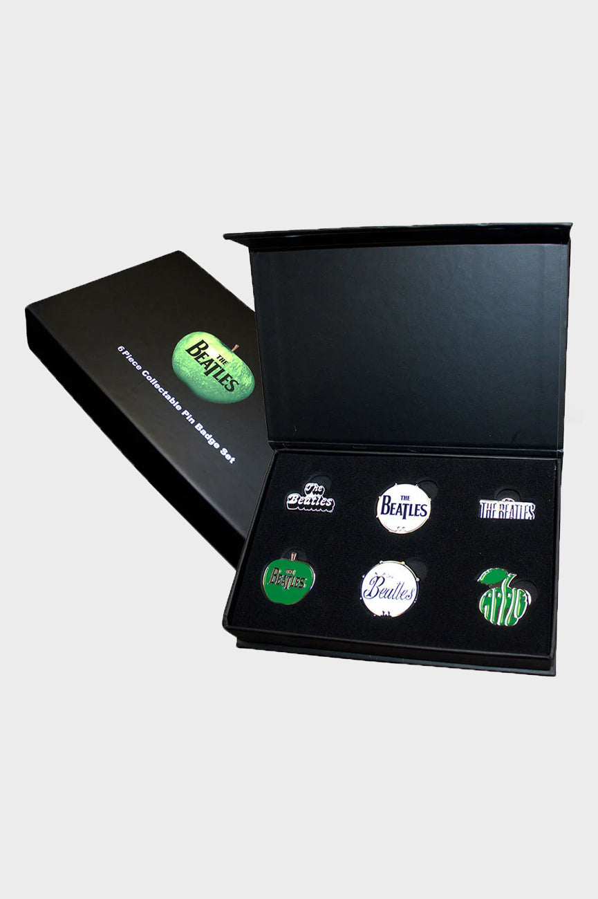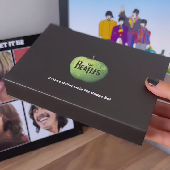 Celebrate the legacy of the world’s most iconic band with this officially licensed The Beatles 6-Piece Collectible Pin Badge Set. Housed in a sleek black presentation box featuring the classic Apple logo, this premium set includes six unique enamel pins, each showcasing a different classic Beatles logo or design.