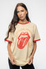 An official licensed The Rolling Stones Unisex Ringer T-Shirt featuring the 'US Tour '78' design motif. This high quality Ringer T-Shirt is available in a natural & orange colourway. High quality classic fit soft-style cotton tee with short sleeves and crew neck. Features front printing and contrast colours to neck and sleeve edging which adds a subtle but eye catching look. Comes in a wide range of sizes from Small through XX-Large, subject to availability.