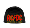 This Brand New Official AC/DC Beanie Hat with an Let There Be Rock Album Logo Print Design on a 100% Black Cotton One Size Beanie Hat is just one of our many officially licensed band merchandise you can buy online at paradisoclothing.com. This is the perfect gift for any fan.