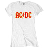 An official licensed AC/DC Ladies Tee featuring the 'Logo' design motif. This high quality t-shirt design is available in the white colourway. Classic unisex fit soft-style cotton tee with crew neck. Supplied in retail pack for easy display. We offer a range of sizes from Small through XX-Large, subject to stock availability.