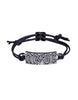 A 3D sculpted pewter logo on a doubled black waxed cord with a black pewter slide fastener allowing adjustability up to 10" (25cm) in diameter.