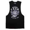 An official licensed Johnny Cash Vest T-Shirt featuring the Walk The Line Boots design motif. This high quality Tank T-Shirt is available in a black colourway. Comes in a wide range of sizes from Small through XX-Large, subject to availability.