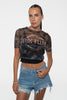 An official licensed Pink Floyd Ladies Mesh Crop Top featuring the 'Vintage Dark Side of the Moon Seal' design motif. This high quality Mesh Crop Top is available in a black colourway. Refined and stylish, this exquisite mesh fitted Mesh Crop Top embodies the essence of high fashion. Crafted with meticulous attention to detail, it boasts a mesmerizing all-over sublimation print that extends throughout. Comes in a wide range of sizes from XX-Small through X-Large, subject to availability. SIZE GUIDE: [XXS = UK 6 & US 2][XS = UK 8 & US 4][S = UK 10 & US 6][M = UK 12 & US 8][L = UK 14 & US 10][XL = UK 16 & US 12]