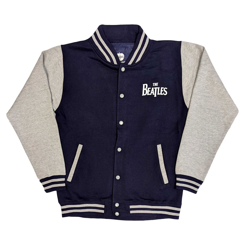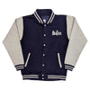 An official licensed The Beatles Unisex Varsity Jacket featuring the 'Revolver' design motif. This high quality Varsity Jacket is available in a navy blue & grey colourway. High quality varsity style jacket with contrasting sleeves. Comes in a wide range of sizes from Small through XX-Large, subject to availability.