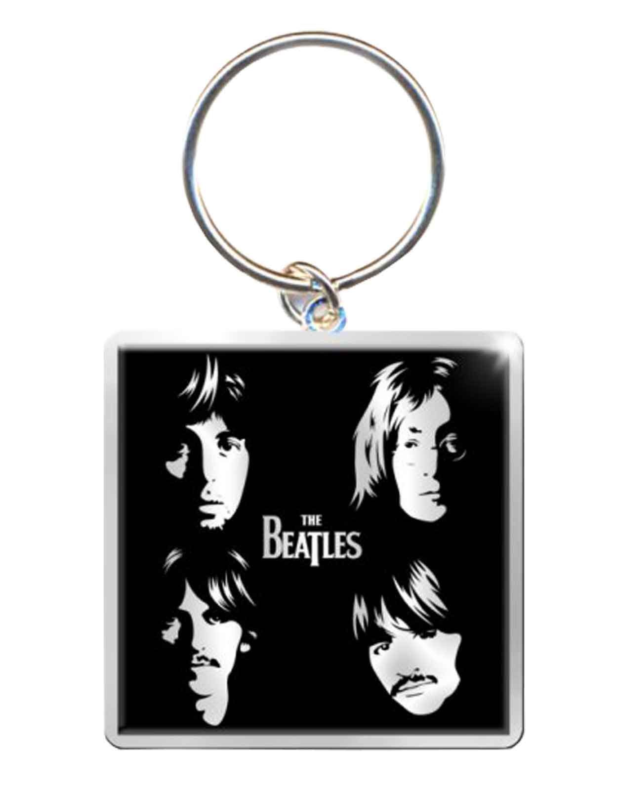 The Beatles Keyring Keychain Illustrated Faces Band Logo Official Black Metal