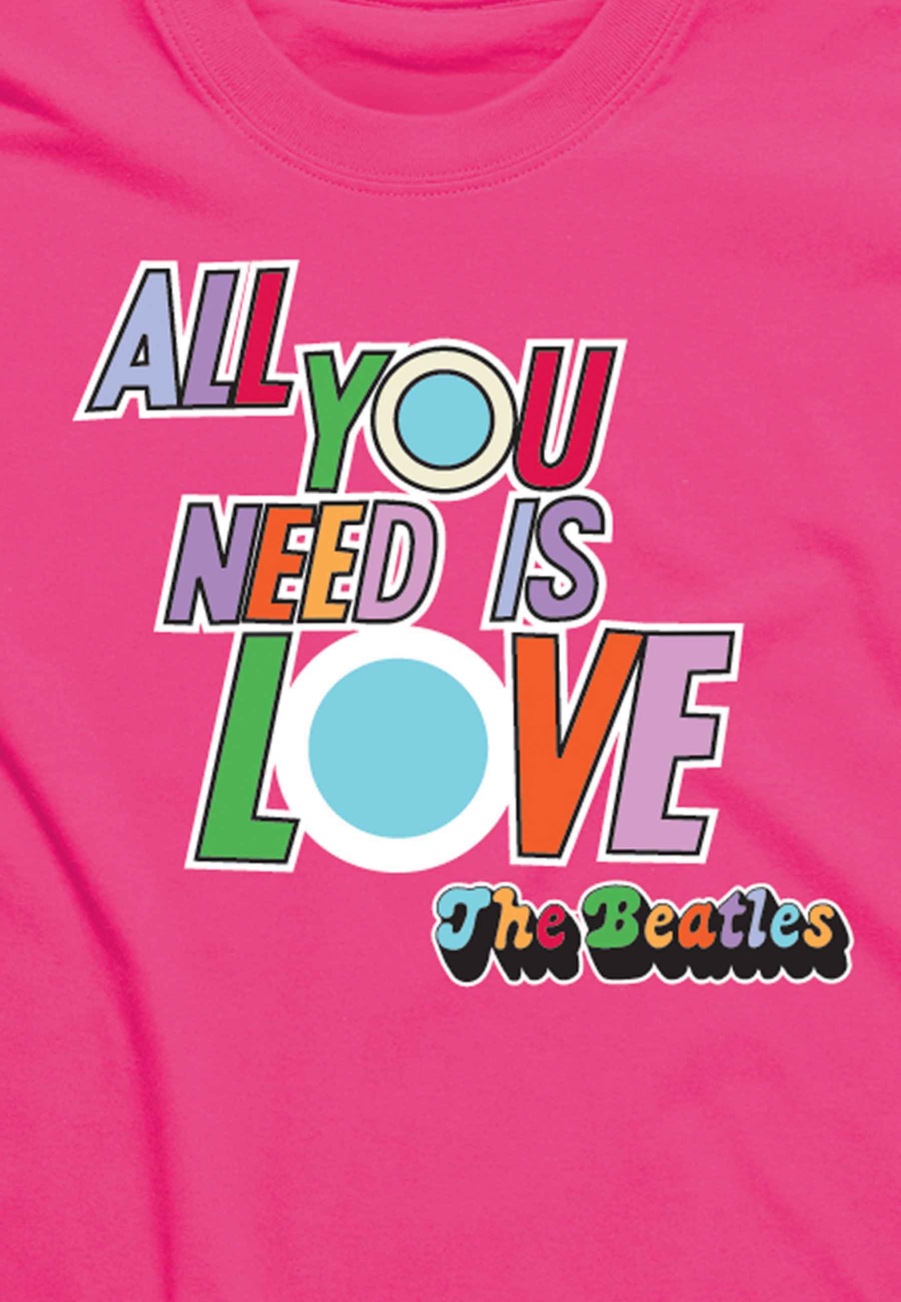 The Beatles Kids T Shirt All You Need Is Love new Official Pink Ages 1-10 yrs