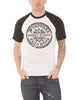 This Brand New Official The Beatles T Shirt with a Sgt Pepper Lonely Hearts Drum Logo Design on a Mens White Short Sleeve Crew Neck Raglan Baseball T Shirt This is the perfect gift for any fan.
