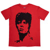 Official licensed David Bowie Unisex T-Shirt featuring the '1973 Monochrome' design motif. High quality T-Shirt available in a red colourway. High quality soft style cotton unisex t-shirt featuring front printing. Comes in a wide range of sizes from Small through XX-Large, subject to availability.