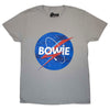 Official licensed David Bowie Unisex T-Shirt featuring the 'Starman Logo' design motif. High quality T-Shirt available in a grey colourway. High quality soft-style cotton unisex t-shirt featuring front printing. Comes in a wide range of sizes from Small through XX-Large, subject to availability.