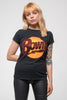 An official licensed David Bowie Ladies T-Shirt featuring the 'Diamond Dogs Logo' design motif. This high quality T-Shirt is available in a black colourway. High quality & eye-catching fashion tee with short sleeves, richly embellished with diamante/rhinestone crystals. Comes in a wide range of sizes from Small through XX-Large, subject to availability.