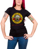 New and official band merchandise Guns N' Roses women's skinny fit T shirt Tee showing the Not In This Lifetime Tour graphic design back printed on soft-style cotton. This high-quality t-shirt is available in a black colourway. Size options include Small through XX-Large.