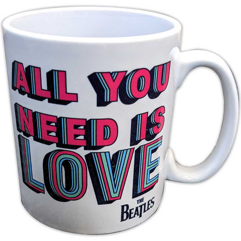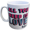 An official licensed The Beatles Unboxed Mug featuring the 'All You Need Is Love' design motif. This high quality Unboxed Mug is available in a white colourway. High quality ceramic unboxed mug featuring printed all round design motif.