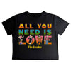 Official licensed The Beatles Ladies Crop Top featuring the 'Yellow Submarine AYNIL Stacked' design motif. High quality black ladies crop top featuring front printed motif. We offer a range of sizes from Small through XX-Large, subject to stock availability.
