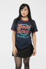 An official licensed David Bowie Unisex Ringer T-Shirt featuring the '1978 World Tour' design motif. This high quality Ringer T-Shirt is available in a navy blue colourway. High quality soft-style cotton unisex ringer t-shirt featuring contrasting sleeve and collar detail. With front printing. Rock Off brings the classic ringer tee up to the minute, with a nod to the popular 60s classic style tee, now available in a wide range of colours and designs. Comes in a wide range of sizes from Small through XX-Large, subject to availability.