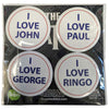 An official licensed The Beatles Button Badge Pack featuring the 'I Love 4 Pack Large' design motif.