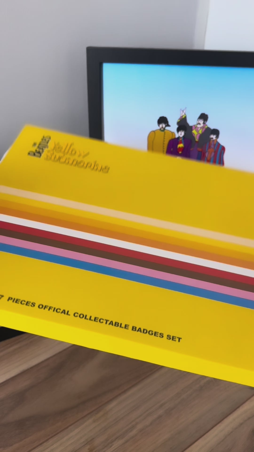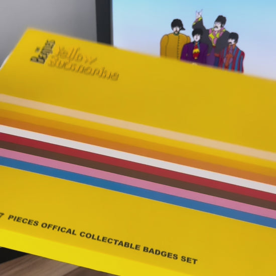 Celebrate the magic of The Beatles: Yellow Submarine with this officially licensed 7-piece collectible badge set. Housed in a vibrant, retro-inspired presentation box, this set features colourful enamel pins of the iconic characters and imagery from the beloved 1968 animated classic.