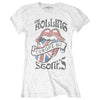An official licensed The Rolling Stones Ladies Tee featuring the 'Europe 82' design motif. This high quality t-shirt design is available in the white colourway. We offer a range of sizes from Small through XX-Large, subject to stock availability.